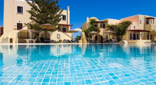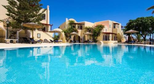 Summer Travel in Aghios Georgios, Sandorini, Cyclades Islands in Smaragdi Hotel