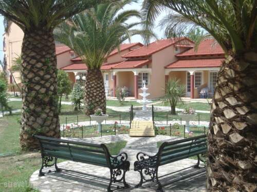 This holiday apartment complex is surrounded by verdant gardens and swaying palm trees, just a ten -minute walk from the beach in the small town of Agios Ioannis. The slightly more cosmopolitan resort town of Sidari is within walking distance or about two minutes by car. There guests will find a variety of restaurants, bars and Greek-style taverns. Visitors might also take a day trip to the island’s capital to explore the two castles and narrow streets of the old town. Each spacious and modern apartment and villa comes with a handy kitchenette where guests might prepare home-cooked meals, as well as a private balcony or terrace with garden views. After a long day spent exploring the island, guests might go for a refreshing swim in the outdoor pool or relax in a sun lounger and sip a drink from the pool bar. The complex also offers Wi-Fi internet access and a barbeque area for guest use, all for a delightful holiday by the sea.