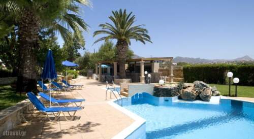 Located just 100 meters from Tarsanas sandy beach, Alianthos suites offers self-catered units built within a beautiful garden. It has a swimming pool and a private bay overlooking the Cretan Sea. Alianthos features spacious, tastefully decorated rooms with balconies or verandas enjoying sea or garden views. Ôhey all have a well equipped kitchen with dining area. Other in-room facilities include air conditioning, satellite TV and safety box. At the swimming pool area, surrounded by the hotel’s gardens, guests can find sun loungers and umbrellas. There is also a pool bar serving snacks and refreshing beverages. The more active guests will find a tennis court located right next to the sea. Alianthos suites also features a children’s playground and BBQ facilities. Alianthos hotel offers Wi-Fi access and free private on-site parking. Chania airport is a 10-minutes drive away and Souda port is a 15-minutes drive. The town of Chania is at 8.1 miles.