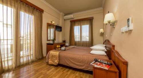 Lakonia Hotel features rooms with a 20″ satellite TV and a bar which is open throughout the day. Situated in Sarti, it is 150 meters away from Tomb of Leonidas. Hotel Lakonia’s air-conditioned rooms have a private balcony with panoramic views of palm trees. Bathroom amenities are provided for each en suite bathroom. Lakonia’s staff can arrange tours and trips to Sarti’s cultural attractions. The hotel’s front desk is open throughout the day. Hotel Lakonia is less than 5 minutes drive from archaeological museum and the Altar of Lycourgos.