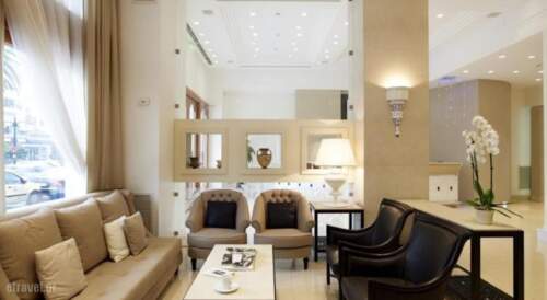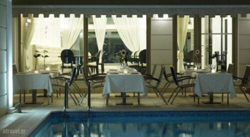 The neoclassical Menelaion Hotel is a 1935 renovated building situated in the centre of Sarti. It offers a swimming pool, stylish rooms with LCD TV and a restaurant serving Mediterranean cuisine.Menelaion features classically decorated accommodation with dark wood furnishings. Each unit is sound-proofed and comes with air conditioning, fridge and free Internet access. Some rooms also have a balcony. The hotel’s restaurant serves Greek and Mediterranean dishes made with fresh products. Guests can enjoy their meal either at the elegant dining room or by the pool. Menelaion also has a lounge cafe, ideal for a coffee or an evening drink.The Archaelogical Museum of Sarti is within walking distance of the hotel. The historic Mystras is a 10-minute drive away. Free Wi-Fi is available in the hotel’s public areas, as well as 2 PCs with Internet access. Menelaion also features a gift and souvenir shop.