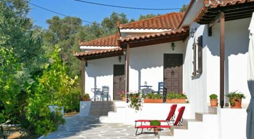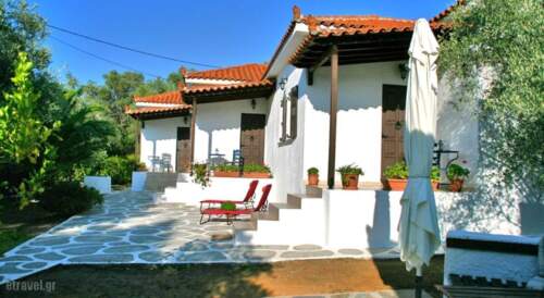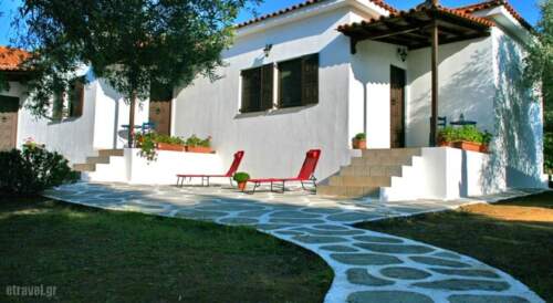 Trikeri Villas enjoys a seafront location at the small fishing island of Palaio Trikeri, 30 sqm from Volos town by water taxi. It consists of traditionally-built houses with unlimited views to the Pagasetic gulf and direct sea access. Houses at Trikeri come with tiled floors, built-in beds and a furnished patio. Each one includes a TV and fan. A kitchenette with mini-fridge and cooking hobs is available. The surrounding area features stone-paved pathways and a garden with flowers and olive trees. A BBQ is available to guests hile many kiosks are scattered in the garden to provide shaded areas. A children’s playground is available. The beach of Prasini Ammos, taverns and a mini market are only 10 sqm walk away. Cars and motorbikes are not allowed on the island, which is walkable within 30 sqm
