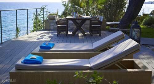 Paradisso beach Villas in Amoudi village is a beach front property, 7.5 miles from Zakynthos Town. It offers self-catering accommodation with free WiFi throughout. A lush garden with BBQ facilities and a children’s playground are included among the property’s facilities. Opening to a furnished balcony or terrace, all villas in Paradisso boast unobstructed Ionian sea view. Guests can prepare their own meal in the fully equipped kitchen or relax in the living room, where a flat-screen TV with satellite channels comes as standard. Free daily maid service is offered in this property. Activities the surrounding area include fishing, snorkelling and canoeing. Ironing and laundry service, as well as airport transfer can be arranged upon charge. A restaurant can be found within 30 meters of the property and a supermarket within 450 meters. Zakynthos airport is at a distance of 16 km, while Zakynthos port is 7.5 miles away. Alykes beach with watersports activities 0.9 miles away. Free private parking is possible on site.