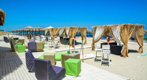 Situated on the beautiful organised beach in Leptokaria, Olympian Bay offers modern bungalows and rooms with a host of leisure activities, including water sports and animation programmes.Olympian Bay enjoys a picturesque location at the foot of Mount Olympus and faces the sea. Spacious rooms are decorated in muted tones and appointed with modern amenities and a spacious private balcony. Start the day with a sumptuous buffet breakfast. Enjoy beautiful views to the sea or the gardens whilst sipping your morning coffee.Relax around one of the 2 outdoor swimming pools or join in with the aerobics classes. Enjoy entertainment from Olympian Bays animation team, or play volleyball on the beach. You can also benefit from one of Olympians professional massages before relaxing in the hot tub. Umbrellas and chairs are offered at beach or the pool area.In the evening, enjoy Greek cuisine on Olympians Greek taverna or visit the delicious Italian or Asian restaurant. Afterwards, relax with a drink on the terrace and watch the sun set.The pretty town of Leptokaria is just 15 minutes walk away from Olympian Bay Hotel. Should you wish to explore this fascinating area by car, Olympian Bay can arrange car rental and offers free private parking.