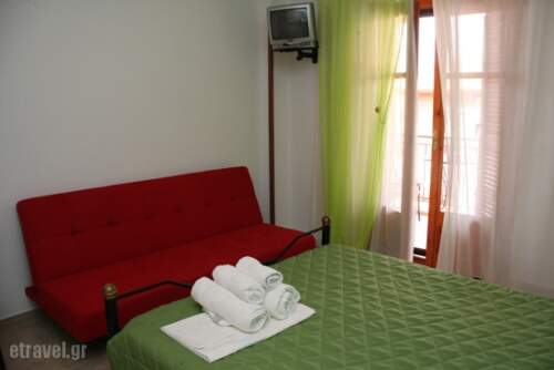 The 3-star Hotel Gallery is located just 350 m. from the main port of the island, within walking distance from the main square of Ammouliani, in a quiet, welcoming and discreet environment. Hotel Gallery offers 14 fully furnished single apartments, with kitchen, refrigerator, air conditioning, Tv, with large terraces and bamboo sofas to relax by watching the sea. Cleanliness, impeccable service, warm hospitality and personal care to each guest are important reasons for visiting Hotel Gallery Ammouliani. Hotel Gallery can and guarantee a comfortable and pleasant stay. In the beautiful garden you can have breakfast, your afternoon coffee or barbecue with the fish you catch from the sea.