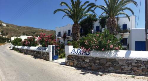 Cyclades Islands. What’s your idea of the perfect beach? Green-blue water and white sand? Beach bars and water sports? Framed by rocks for snorkelling and scuba diving?A secret Aegean cove accessible only on foot or by boat? No matter what your ideal is, you’ll find plenty of choices in the Cyclades. Known for the iconic blues and whites of their villages and their stunning beaches, the Cycladic islands equally deserve worldwide renown for what their crystalline waters and cove studded shoreline offer to sea lovers. Pension Askas specializes in a local treat with an aroma of the Aegean. Located at Ormos Aegialis, Aegiali, 84008 , Greece, Pension Askas will make you believe that it has come out of the foam of waves and looks like a white painting on a blue font. Pension Askas is ideal for a relaxed and serene holiday. Because of Pension Askas location visitors can easily explore impressively fertile valleys, lush green gorges, stunning seascapes and traditional villages perched high on mountain tops, where the inhabitants still wear their traditional dress and live off the fruits of the land! Pension Askas is the place where Greek tradition and hospitality come to a harmonious marriage.