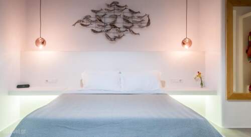 Cyclades Islands. Whats your idea of the perfect beach? Green-blue water and white sand? Beach bars and water sports? Framed by rocks for snorkelling and scuba diving?A secret Aegean cove accessible only on foot or by boat? No matter what your ideal is, youll find plenty of choices in the Cyclades. Known for the iconic blues and whites of their villages and their stunning beaches, the Cycladic islands equally deserve worldwide renown for what their crystalline waters and cove studded shoreline offer to sea lovers. Vilos Suites specializes in a local treat with an aroma of the Aegean. Located at Pollonia, Milos Island, 84800, Greece, Vilos Suites will make you believe that it has come out of the foam of waves and looks like a white painting on a blue font. Vilos Suites is ideal for a relaxed and serene holiday. Because of Vilos Suites location visitors can easily explore impressively fertile valleys, lush green gorges, stunning seascapes and traditional villages perched high on mountain tops, where the inhabitants still wear their traditional dress and live off the fruits of the land! Vilos Suites is the place where Greek tradition and hospitality come to a harmonious marriage.