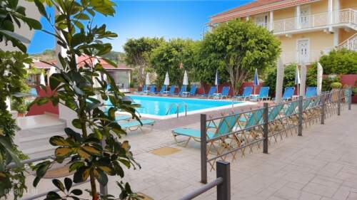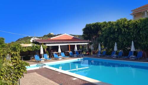 An adult only focused accommodation in the heart of the quaint village, Arillas. Only steps away from the long stretched golden sands beach and village amenities. Mathraki Studios offers small studios, with kitchenette for self catering holidays. Although we do have a fantastic onsite poolside bar and grill for those who would like to get away from everyday cooking on holiday. Along with many restaurants in the village. Simple and traditional greek value apartments run a small friendly family.