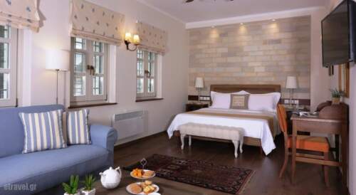 Gamila Rocks Adventure Resort is situated in the picturesque village of Aristi in Central Zagori. It features a gym, sauna, a lounge with fireplace and a wine cellar. The luxurious boutique hotel offers tastefully decorated rooms, each with a minibar, heating and TV. Some rooms also feature a fireplace. Guests can relax with a drink at the wine cellar which proposes a rich variety of local and international wines. Wi-Fi and wired access is provided for any necessary business obligations. For the more adventurous, Gamila Rocks can arrange mountain biking, hiking, kayak, rafting, as well as jeep safari expeditions. Overlooking the mountains of Astraka, with the Voidomatis River flowing beneath it, Aristi is the ideal base for excursions and trips to Papingo, Vikos Gorge and the lake Drakolimni.