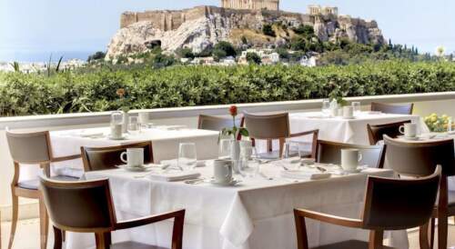 With a prime location, opposite Constitution Square and the House of Parliament, the Grande Bretagne boasts luxurious rooms and stunning city views from its magnificent rooftop terrace. WiFi is offered in all rooms and areas.The lavish rooms are appointed with the finest furnishings. The marble bathrooms feature a vanity counter, separate bathtub, and shower. Some rooms have balconies facing the Acropolis, and the daily changing of the guard at the parliament building.From Grande Bretagne’s Roof Garden Restaurant you can see the original Olympic Stadium as you dive into the pool; the Acropolis from your barstool; the Parthenon as you sample the finest Mediterranean cuisine.The Grande Bretagne Spa offers a thermal suite, complete with herbal bath, grotto, ice fountain, couples retreat and indoor pool. Guests can indulge in ouzo oil massages.From private dining parties at The Cellar, to VIP airport transfer, the legendary Grande Bretagne prides itself on its service.The multi-awarded 5-star hotel is walking distance of exclusive shopping areas, museums and the business district. The Ancient Agora and the Acropolis are 650 yards away.