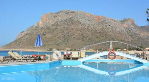 On a private beach in Stavros, Blue Beach offers a pool, a tennis court and a traditional restaurant. The self-catered rooms have a balcony overlooking the Cretan Sea and Akrotiri’s landscape.The rooms have a private entrance and include a TV and a DVD player. Each has a well-equipped kitchenette with a fridge. Some rooms at Blue Beach Villas Apartments feature a dining area and a microwave oven. Air conditioning and safes are provided upon extra charge.Breakfast, lunch and dinner are served at the Blue Beach restaurant. The bar serves drinks and coffee with panoramic views of the mountains and sea. A children’s playground is available for younger guestshe hotel also features a basketball court.Hotel staff can arrange car rental and trips to the archaeological site of Knossos or to Samaria Gorge. Lively Chania city is 9.3 miles away and Chania Airport is at 6.8 miles.