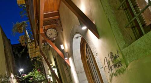 Ionas Hotel is a carefully restored historical home, located in the heart of the old town of Chania. Ionas is a perfect base for guests shing to explore authentic Chania. The Venetian and Ottoman elements of this charming building have been restored and thoughtfully recreated to celebrate its heritage. Even the core walls of the building date back to 1538. The heart of the House’s howcases a staircase that has been carefully crafted from wood and iron to create a fine example of classic design. The decorative touches of stain-glass windows add to the unique beauty of Ionas house. However, modern luxuries have not been ignored and each spacious room is equipped with a separate bathroom, featuring a spa bath or hydro-massage shower. The hotel is also fully air-conditioned throughout. Ionas Hotel is just 100 meters from the harbour, with many of Chania’s monuments and museums within a short walking distance. The local markets, cafe and restaurants provide plenty of afternoon and evening entertainment.