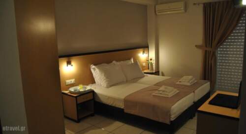 Theofilos Hotel is situated 1.2 miles from the beach and 0.9 miles from the scenic old town of Chania. It offers free Wi-Fi in public areas and buffet breakfast.Rooms at the family-run Hotel Theofilos include air conditioning and a TV. Each is equipped with a fridge. Most units have a balcony and most overlook Chania, its historic harbour and the Cretan Sea.Souda Port is 1.9 miles away and Chania International Airport is at 9.3 miles. The lively Platanias resort is 10.6 miles away from the hotel.