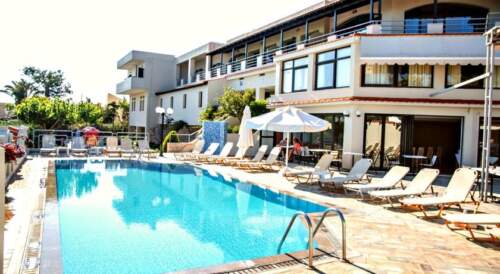 Anna Maria village are situated in Anissaras, 15.5 miles east from Heraklion, 1.2 miles west from Hersonissos and 350 meters from the beach. All comfortable and luxurious rooms dispose a living room, bathroom, kitchenette, bedroom and balcony or terrace with view to the sea or to a beautiful garden. Each is equipped with fridge, air condition and satellite TV. Anna Maria village provides guests various facilities including a swimming pool, a children’s pool and playground, pool bar andala carte restaurant. The complex’s shopping centre consists of a super market, rent a car, souvenir shop, boutique and an internet and games centre.
