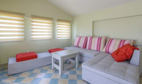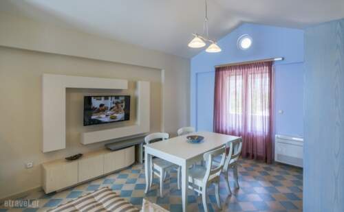 The natural beauty and calmness of West Komi, the large sandy beach with the clear blue waters, became the motive of a dream to be created, Fani’s House. All of them are pictured in a house with two two-room apartments in the ground floor and one three-bedroom apartment in the first floor. The upper apartment has also a balcony and two terraces where someone has a view both at the plain of Komi and at the Aegean Sea. The cross of Prophet Elias every night connects the earth with the sky with its bright color, up in the hill the archeological treasures are ready to be discovered and the seabirds follow the fish boats to their destination into the Sea. All these combined with the colors of the sand and the sea are some of the pictures that someone will experience at our comfortable and luxury facility and will have an enjoyable and relaxing time. The facility is spacious, air-conditioned and equipped with modern technology (Wi-Fi, new kitchenware, TV).