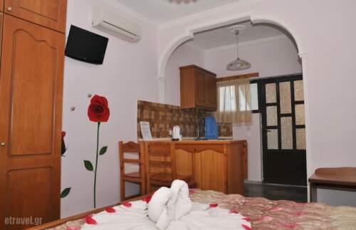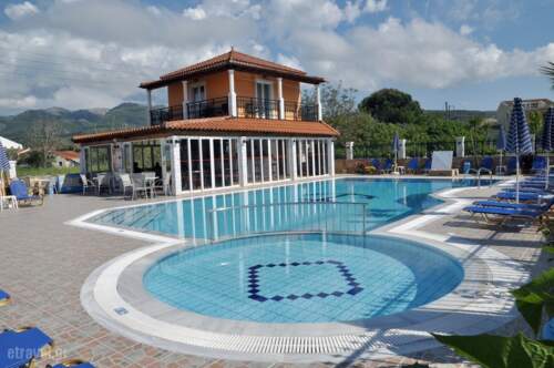 This is a family run apartment complex with modern facilities and hospitable services. The beautiful gardens that surrounds the building create a cosy atmosphere. A breakfast room and car park area provided by the hotel.An outdoor fresh water pool with sun loungers and parasols on the side is available for relaxing hours.All studios and apartments are simple decorated and very clean.Each one features a bathroom and a shower, a t.v, a kitchenette, a fridge and an oven. In addition they are individually air condirtioned with extra fee and have a balcony.Located in a peaceful area away from noise and very close, just 5 min on foot, to the sandy beach of Roda. The touristic centre is Acharavi town that is in distance of 3 km offering wide range choices for entertainment.