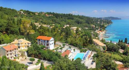 Just 450 yards from the beach, Brentanos Apartments are surrounded by beautiful olive and lemon groves and offer a peaceful and relaxing base, just 5 miles from Corfu Town.At the Brentanos complex you can enjoy the panoramic view of the Ionian Sea, whilst sipping a drink at the pool or relaxing on your private balcony. The surrounding area combines olive and lemon groves with rose gardens, creating a picturesque and relaxing environment.There are a variety of apartments and suites available to suit your holiday needs. Each one is comfortably furnished and equipped with full kitchen facilities. Local shops are just 350 yards from Brentanos, convenient for all your shopping needs.The Brentanos Apartments are a short distance to the cosmopolitan town of Corfu, which provides great clues to the history of Greece. Its old town is part of the UNESCO world heritage list. You can admire the town’s natural setting and archaeology, take advantage of the numerous cultural festivities year round and enjoy Corfiot cuisine.
