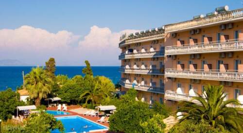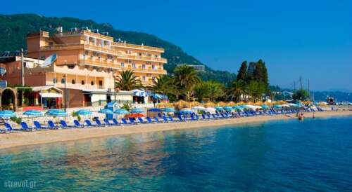 Potamaki beach Hotel enjoys a beach front location in Benitses village, in Corfu. The hotel’s reception is available 24 hours a day. The 5-storey building has 170 simply decorated rooms, most of which are sea-view. All rooms are equipped with satellite TV sets and refrigerators. Guests can enjoy the fresh-water swimming pool with large pool terrace equipped with umbrellas, sun beds and showers. Also available is a pool for children.