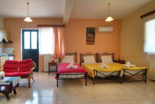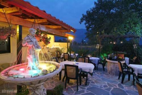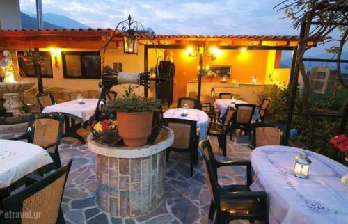 Kelari Studios is located at a beautiful corner in the beginning of village. It is made with mirth, love and corresponds in each taste and needs. It is found in Sernikaki, a graphic village between Itea and Amfissa and in small distance from Delphi, Arachova and Galaxidi. A choice that combines everything: Arachova for the kosmopolitans, Delphi for the lovers of History, Galaxidi for those that can’t go away from the sea, and a graphic village at the foot of Parnassos mountain ,for those that simply want relaxation in the nature. All that in a small distance from your cozy, multicoloured room, which will wait you, when you return from the day-long walks, DVD player and free of charge wi-fi will be waiting for you. In the restaurant-cafeteria of Kelari Studios, you can enjoy the traditional breakfast, made from the hands of the hostess. Home-made jams, honey, home-made cake, eggs. Enjoy your drink in the bar, taste the Greek traditional coffee in the ember next to the fireplace and mainly try the amazing tidbits made in the flower pot, the fresh local meats in the coals and our local pies. In the summertime, enjoy the dew in our full of flowers garden, next to the fountain. We wait to offer you a comfortable stay in the nature, with view at Delfi Landscape, at Parnassos, Gkiona and Bardoysia mountains.