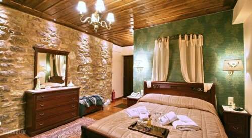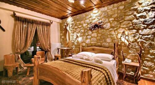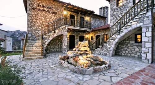 En Dimitsani Guesthouse is built at the entrance of the village, overlooking a gorge which ends at the River Lousios. It offers free wireless internet and free on-site parking. The traditional guesthouse offers tastefully decorated and furnished deluxe rooms. In-room facilities include a fireplace, anatomic beds, Apivita bathroom amenities, a mini fridge and LCD TV set and internet connection. The guesthouse features a lounge area with fireplace, flat screen TV and free Wi-Fi. Guests can spend relaxed moments, play board games, enjoy the scenic view or taste delicious homemade breakfast. The hotel’s location offers easy access to its stone-paved streets, its stone-built mansions and its churches.
