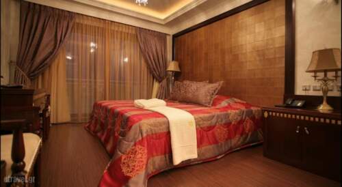 Royal Palace Resort Spa is a luxury hotel situated in the heart of Platamonas opposite the harbour. Facilities include an outdoor pool and a Spa. The rooms and suites of the 4-star Royal Palace Resort Spa are elegantly furnished. All rooms have views of the Aegean sea and Mount Olympus. All spacious rooms come with free Wi-Fi and flat-screen TV with DVD player. The Armonia Spa Centre includes hammam, sauna, hydromassage, solarium and steam bath facilities. Massages are also available. The Royal Palace Resort Spa has 2 restaurants offering gourmet meals and a main and a poolside bar. Several picturesque beaches are located at a distance of only a few kilometres. Mount Olympus and its picturesque villages are very close by.