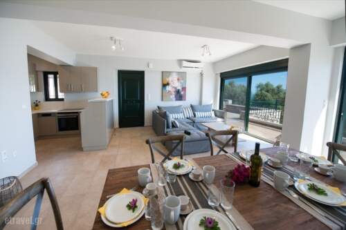 Pearl Mansions consist of four independent villas in Pearl Mansions. The villas are new development and were designed with care to provide comfort and unforgettable holiday experience to their guests. The front face of the building has been designed according to the traditional style of the local houses of Lefkada with the highest architectural and structural standards. A light spacious living room and dining area are furnished with beautiful country inspired furniture. This impressive open plan fully equipment kitchen and living area provide fantastic views over the sea. Externally, the villa is surrounding by landscaped garden and large terraces and provide spectacular views at every point. The guests are able to enjoy the breath-taking mountain scenery as well as the clear blue waters of the Ionian sea. For residents who enjoy outdoor cooking, there is a traditional barbecue area. There is also gated private parking for two cars. It is the ideal location for the guests who want to explore one of the Greece’s most unique islands and enjoy a relaxing break away. Services offered if requested: car and bike rental; taxi transportation; bicycle rental.