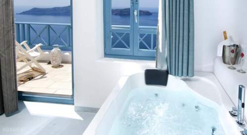 Exclusively stylish and romantic, Absolute Bliss is placed on the highest point of the black volcanic rock of Santorini, with breathtaking Caldera views.Colourful sunsets and wonderful caldera views are complemented by generous Greek hospitality, private verandas and the simplicity of traditional Aegean architecture. Upon arrival a complimentary bottle of wine is offered to all honeymooners and those who have reserved a suite. The luxurious suites are well located for exploring the village of Oia and the small island of Thirasia. The town of Fira is 1.2 miles away.