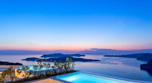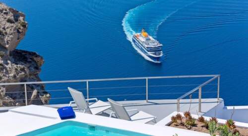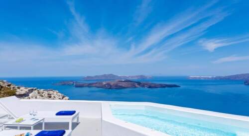 Enjoying panoramic views over the Caldera and the Aegean Sea, Alti in Megalochori Village offers minimal-style suites with outdoor and private,heated plunge pools with hydromassage facilities. Built according to the local architecture, all units come with free WiFi.All suites have their own terrace and sunbeds with access to the plunge pool. Each includes a satellite, smart TV and a minibar.Guests can start their day enjoying the full Mediterranean breakfast served in their own patio. Restaurants and bars are 0.6 miles away, while a grocery store is just 200 yards from Alti Suites. The island’s main port is at a distance of approximately 2.5 miles. Perivolos Beach is within 3.7 miles. The owners can help with ticket services, as well as car and bike rentals. Free parking is available nearby.