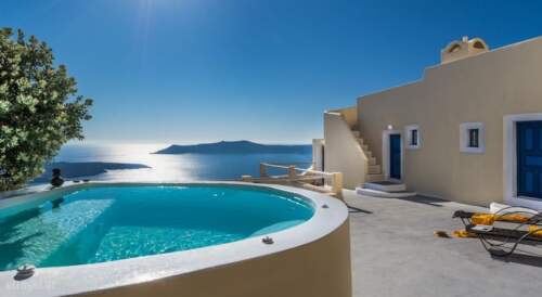 Centrally located in Firostefani of Santorini, the traditionally built Astraea House offers tastefully decorated accommodation with unobstructed views over the Aegean sea and the Caldera. Free Wi-Fi is available in all areas. Following the Cycladic decorative style, all air-conditioned apartments and villa of Astraea are fitted with arches, built-in sofas, white and blue tones and well-chosen furnishings. Each consists of a kitchen or a kitchenette and a satellite TV or flat-screen TV. Some have an outdoor tub with hydromassage facilities. Additional services include a private chef, 24-hour cleaning service, grocery delivery and a private mini bus on request and at extra charge. Massage treatments and personal welcome and concierge services can also be arranged. Guests will find a variety of restaurants, bars and shops within a short walk from Astraea. Ormos Athinios port is 5 miles away, while Santorini National airport is at a distance of 3.7 miles. The lively centre of Fira lies within 450 meters away. Free public parking is possible nearby.