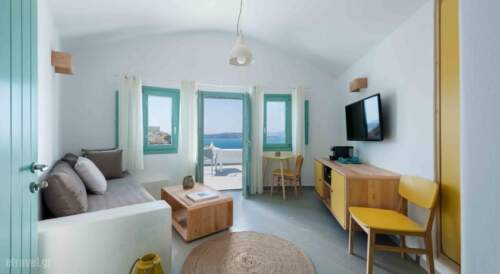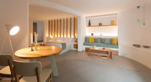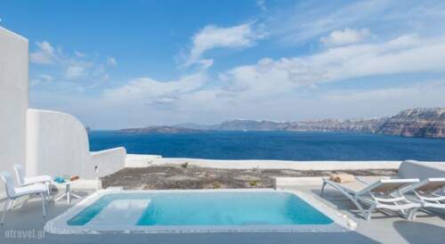 Boasting unobstructed views of the Caldera, volcano and the Aegean sea, the 5-star Neptune Luxury suites consists of elegant suites with a pool or plunge pool. It is only a 10-minutes walk from the excavations of ancient Akrotiri. Featuring restful interior decor and built-in beds, all suites open to a private terrace with sun loungers. Each consists of a separate bedroom, a spacious seating area and a modern bathroom with a shower and aromatherapy options. Guests at Neptune can start their day withala carte breakfast, choosing from continental, Greek or American. A candlelight dinner with butler service can be organised at the privacy of your terrace on request and extra charge. Massage treatments can be arranged for your relaxation. Special services include express check-in and check-out, as well as yacht and helicopter rentals. The property is located only 150 meters from the nearest beach and around 0.9 miles from the famous Red beach. Athinios port is at a distance of 7 km, while Santorini airport is 6.8 miles away.