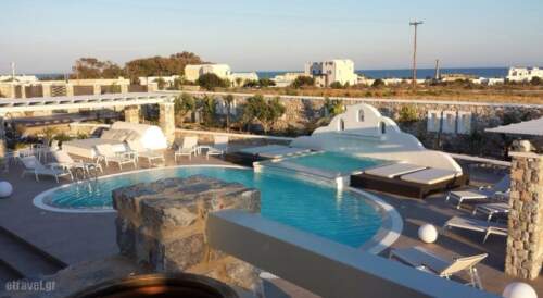 Featuring a counter current swimming pool and a poolside bar, Orabel Suites Santorini is set in Perivolos Village, around 5.6 miles from Fira Town. All Cycladic-style suites feature a private jetted tub, while free WiFi is available in all areas. Perivolos Beach is just 250 yards away.All suites offer views of the Aegean Sea or the pool, and include a living room. There is also a kitchenette, equipped with a refrigerator, and a private bathroom with free toiletries. Air conditioning and a 32” flat-screen TV come standard.Breakfast is daily served in the suites, while guests can enjoy a variety of coffees, drinks and snacks at the on-site snack bar.Kamari is 3.1 miles away, while the nearest airport is Santorini Airport, within 4.3 miles. Private parking is available on site.