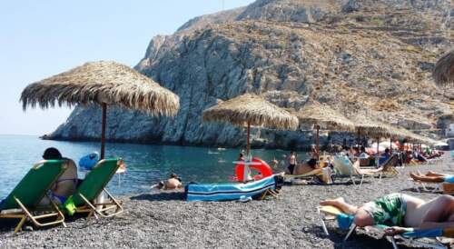 Summer Travel in Fira, Sandorini, Cyclades Islands in Rodothea and Adams on the Beach, Santorini