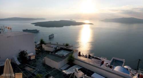 Summer Travel in Fira, Sandorini, Cyclades Islands in Sunset Hotel