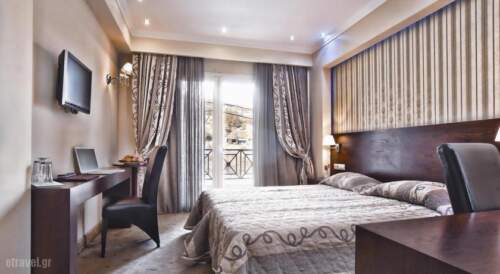 Located just 0.9 miles from the town of Florina, Phaidon Hotel offers luxuriously decorated rooms with free Wi-Fi access. It includes spa facilities and an indoor heated swimming pool.Phaidon Hotel & Spa air-conditioned rooms feature stylish wallpapers and fabrics. They are equipped with LCD TV with satellite channels, safety box and hairdryer. The suites also include a chromatherapy hot tub, a fireplace and a spacious living room.Guests can indulge themselves at Club Blue Room. It includes a hot tub, a sauna and a hammam. The indoor heated pool provides an ideal environment to relax. Phaidon Hotel & Spa features an elegant lounge area with a piano bar, plush sofas and a fireplace, where guests can enjoy their evening drink or cocktail.The scenic Prespes Lakes are within 28 miles from hotel Phaidon. Free private on-site parking is available.