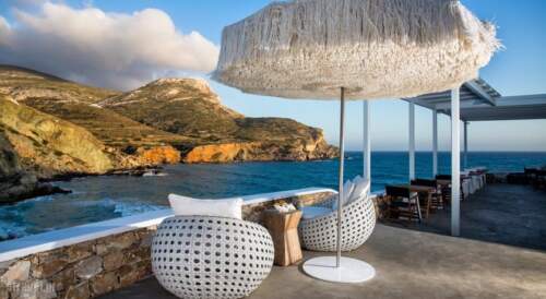 Cyclades Islands. Whats your idea of the perfect beach? Green-blue water and white sand? Beach bars and water sports? Framed by rocks for snorkelling and scuba diving?A secret Aegean cove accessible only on foot or by boat? No matter what your ideal is, youll find plenty of choices in the Cyclades. Known for the iconic blues and whites of their villages and their stunning beaches, the Cycladic islands equally deserve worldwide renown for what their crystalline waters and cove studded shoreline offer to sea lovers. Blue Sand Hotel specializes in a local treat with an aroma of the Aegean. Located at Agali Bay, Folegandros Island, 84011, Greece, Blue Sand Hotel will make you believe that it has come out of the foam of waves and looks like a white painting on a blue font. Blue Sand Hotel is ideal for a relaxed and serene holiday. Because of Blue Sand Hotel location visitors can easily explore impressively fertile valleys, lush green gorges, stunning seascapes and traditional villages perched high on mountain tops, where the inhabitants still wear their traditional dress and live off the fruits of the land! Blue Sand Hotel is the place where Greek tradition and hospitality come to a harmonious marriage.