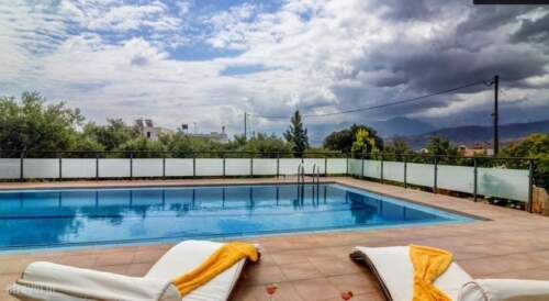 Located 5.6 miles from Chania Town, the fully equipped Villa Renata offers a swimming pool, furnished sun terrace and views to the countryside of Apokoronas. Surrounded by a garden with flowers and olive trees, the villa is 1.2 miles from the sandy Kalyves Beach.The ground floor has 2 bedrooms each with a private balcony and a smaller bedroom. There are 2 two bathrooms. Air conditioning is available in all bedrooms. The open-plan upper floor consists of a living room with fireplace, dining area, shower room and a modern, fully equipped kitchen with dining table. The spacious veranda offers mountain views. Free WiFi is offered throughout.Traditional tavernas and a mini-market are less than a five-minute walk away. The ancient town of Aptera is located a 15- minute walk away. Free private parking is offered at the property.