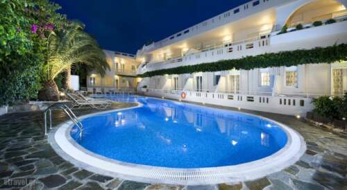 This recently refurbished, 3-star hotel is conveniently located in Plataniasrete’s most well-known seaside village, 100 meters from a sandy beach and 3.1 miles from the historic city of Rethymno. Greek breakfast is served in the morning. The hotel is suitable for couples and for families and offers a friendly and pleasant atmosphere. All apartments suites and studios feature private balconies. The hotel has a large swimming pool surrounded by a charming and colourful garden, the perfect place for enjoying the sunny days. For younger visitors there is a childrens’ swimming pool, as well as highchairs and baby cots. Axos is easily accessible by public transport and there are many shops and restaurants in the area.