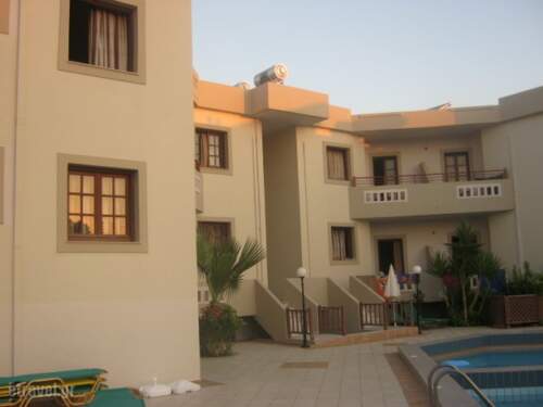 Hotel features two swimming pools, pool bar, playground for children, billiards room, private parking. Rooms equipped with kitchen, cooking facilities, fridge, safety box and air-condition (both paid extra), sat.TV, music channel, telephone,shower/WC, hair dryer, balcony or terrace.** Important: Reception with limited opening hours. When booking this hotel you are requested to advise your flight number and arrival time.