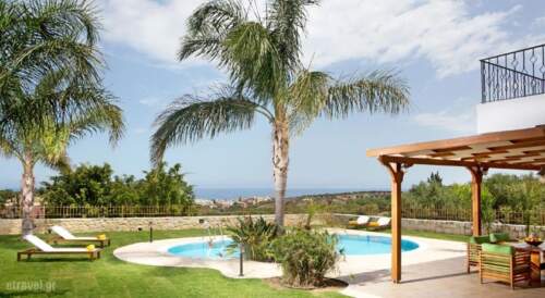 Surrounded by a palm-tree garden, Pandora offers elegant villas with private pool 0.9 miles from Sarandiris beach. Ôhey feature free Wi-Fi, balconies overlooking the Cretan sea and free 2-way transfer from Heraklion airport. The centre of Piskopiano is at 450 meters. A country-style kitchen with stove, fridge and dining area is included in all villas at the Pandora. Each has a seating area with sofa and LCD TV with DVD/CD player. Two modern bathrooms are provided. The sun terrace offers many seating areas with garden furniture and sun loungers. There is also an outdoor dining area. BBQ facilities are provided in the garden. Psikopiano village has fish taverns and shops. Hersonissos village is at 350 meters and Heraklion port is 17.4 miles away. Guests can visit an aquarium at just 5 miles and an aqua park within just 1 miles. Free private parking is provided on site.