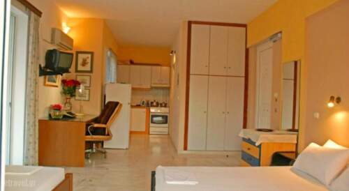 Surrounded by olive trees 200 meters from the 3.1 miles long Mavrovouni beach, Areti-Maria features air-conditioned studios with balcony overlooking the mountains of Mani or the Laconian gulf. Bars and shops are within a 2-minutes walk. Guests are provided with free bicycles. A well-equipped kitchen with stove, fridge and coffee machine is included in all studios at the Areti-Maria. Each has a TV and hairdryer. Guests can play table tennis on the sun terrace. Free Wi-Fi access is offered in communal areas of the property. The centre of Gytheio is 1.2 miles away. Staff at the 24-hour front desk can offer information on the scenic town of Areopoli 16.2 miles away. Free private parking is offered at the property.