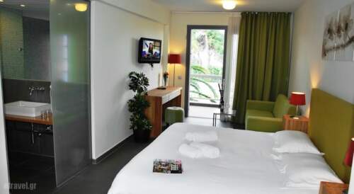 Surrounded by forests and only 250 yards from Haniotis Beach, Hanioti Village Resort offers free Wi-Fi and a spa centre. The swimming pool is surrounded by a spacious sun terrace.The air-conditioned rooms have private balcony overlooking the sea or the hotel’s beautiful gardens and pool. Floor heating, and 20-inch LCD TV and a minibar are included.Guests can make use of a lovely pool area with separate children’s pool. The pool bar is equipped with deck chairs and umbrellas. A sauna, steam rooms and massage services are offered at the hotel spa.Hotel Hanioti Village Spa has a restaurant with indoor and outdoor seating area. You can have your meals served at the dining hall, the bar or the pool bar. Barbeques are hosted on a regular basis. Continental breakfast can be enjoyed daily.Hanioti is situated on the eastern side of Kassandra, the first of Halkidiki’s three peninsulas. Macedonia Thessaloniki Airport is 55.9 miles away, while the resort centre is just 900 yards from the premises. Indoor parking is provided.