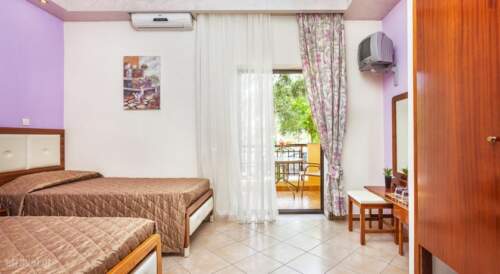 Within 250 meters from Pefkochori beach in Chalkidiki, Lemon Garden features a hot tub and a furnished sun terrace amidst its blossomed garden. It offers free Wi-Fi in public areas and self-catering units with a balcony. Overlooking the mountain and the garden, the studios of Lemon Garden have a kitchenette with fridge, cooking hobs and electric kettle. Each unit is equipped with air conditioning and a TV with satellite channels. The private bathroom is stocked with a hairdryer. Guests can start their day with a continental breakfast served daily at the dining area. Restaurants and shops can be found within a short walk from the property. Chanioti village is at 2.5 miles. The centre of Thessaloniki is 62.1 miles away. Free private parking can be found on site.