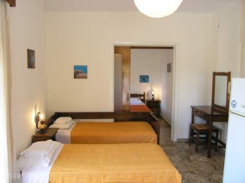 Seven fully equiped apartments, that can accomodate up to 4 persons.Each apartment has a separate bedroom (with two singe beds), a kitchen/dining, seating area (where in some rooms, a third and fourth bed are situated), a bathroom and a balkony. Kitchen is fully equiped with cooking and dining utensils. A balcony is available in every room. Also available: a/c,TV, hairdryer and (upon request) iron and ironing board. Free WiFi is available at all areas. Staff can assist with car or bike rental and provide info about the area.
