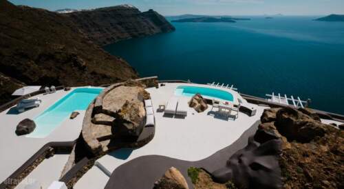 Summer Travel in Imerovigli, Sandorini, Cyclades Islands in Aenaon Villas