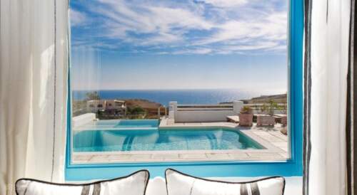 Summer Travel in Imerovigli, Sandorini, Cyclades Islands in Anema Residence