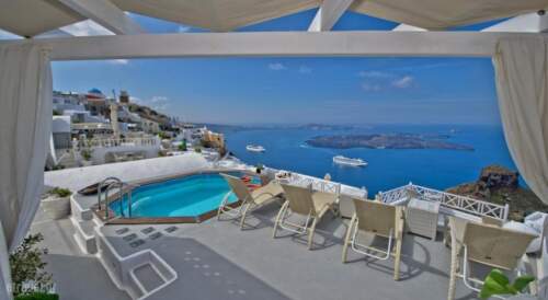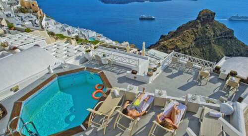 Summer Travel in Imerovigli, Sandorini, Cyclades Islands in Thea Apartments