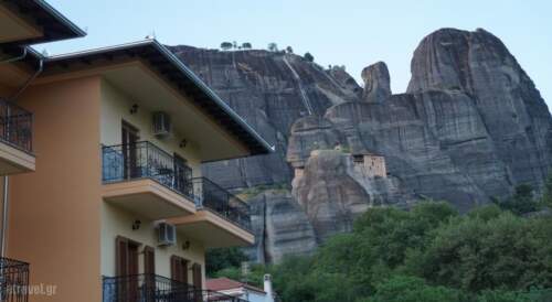 Guesthouse Papastathis, beautifully set in the shade of the rocks of Meteora, is only 0.6 miles away from KaLamiaka and within walking distance from the centre of the picturesque village Kastraki.All rooms are equipped with air conditioning, central heating, bath or shower, TV and balcony with impressive views of the rocks.Wireless internet is available in public areas and is free of charge, while free private parking is also possible on site.The first monastery of Meteora is only 100 yards from the residence.