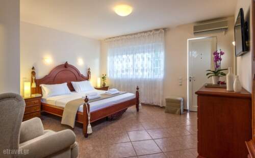 The luxurious, 4 bedroom Villa boasts a perfect location, 5km to the Chania International Airport and just a one minute walk (40 meters) from the sandy beach of the natural bay of Tersanas, on the Akrotiri peninsula in NW Crete, 16 km east of the cosmopolitan city of Chania. On the edge of the beach there is a cantina bar, where sun loungers and umbrellas are provided and on the other side a beautiful tavern with magnificent view of the bay. On the top of the hill just 1 km from the villa there are local cuisine restaurants, super and mini markets, car rentals, bus to the city service, etc. 2 km away there is spa and massage facility. A small chapel is available across the street; ideal for weddings and baptisms. In the nearby village there is also a Christian Orthodox Church with Sunday service and a little further the historical, 16th century, Agia Triada Monastery. The villa is located only 16 km away from the glorious Venetian Port of Chania, the so-called Venice’.