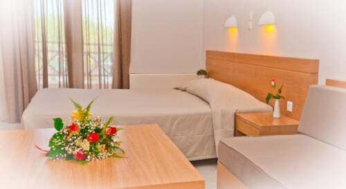 Situated right on Gerani beach, Silver beach Hotel features a swimming pool set within well-kept gardens. Guests can enjoy spacious rooms with seating area’s ports facilities and delicious Cretan cuisine. Silver beach air-conditioned rooms are bright and airy and offer views of the hotel gardens, the pool or the sea. Each comes with free internet access, a safe and TV, as well as a fridge. Some units also include a fully equipped kitchen with coffee maker and microwave oven. A traditional Cretan breakfast, featuring local delights, is served at the Silver beach each morning. Refreshing drinks and cocktails are available by the poolside bar. The on-site restaurant is open for lunch and dinner. Silver beach Hotel includes a well-equipped gym, as well as volleyball and mini-football fields. Younger guests will enjoy splashing in their own pool, as well as safe play at the hotel’s playground. Silver beach is a short distance from the tourist resort area of Platanias.1 miles from the Venetian port of Chania and 16.2 miles from Chania airport. Free parking is available.