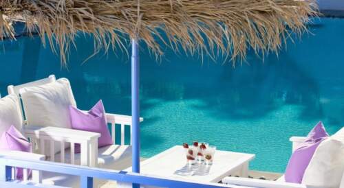 Summer Travel in kamari, Sandorini, Cyclades Islands in Acqua Vatos Hotel